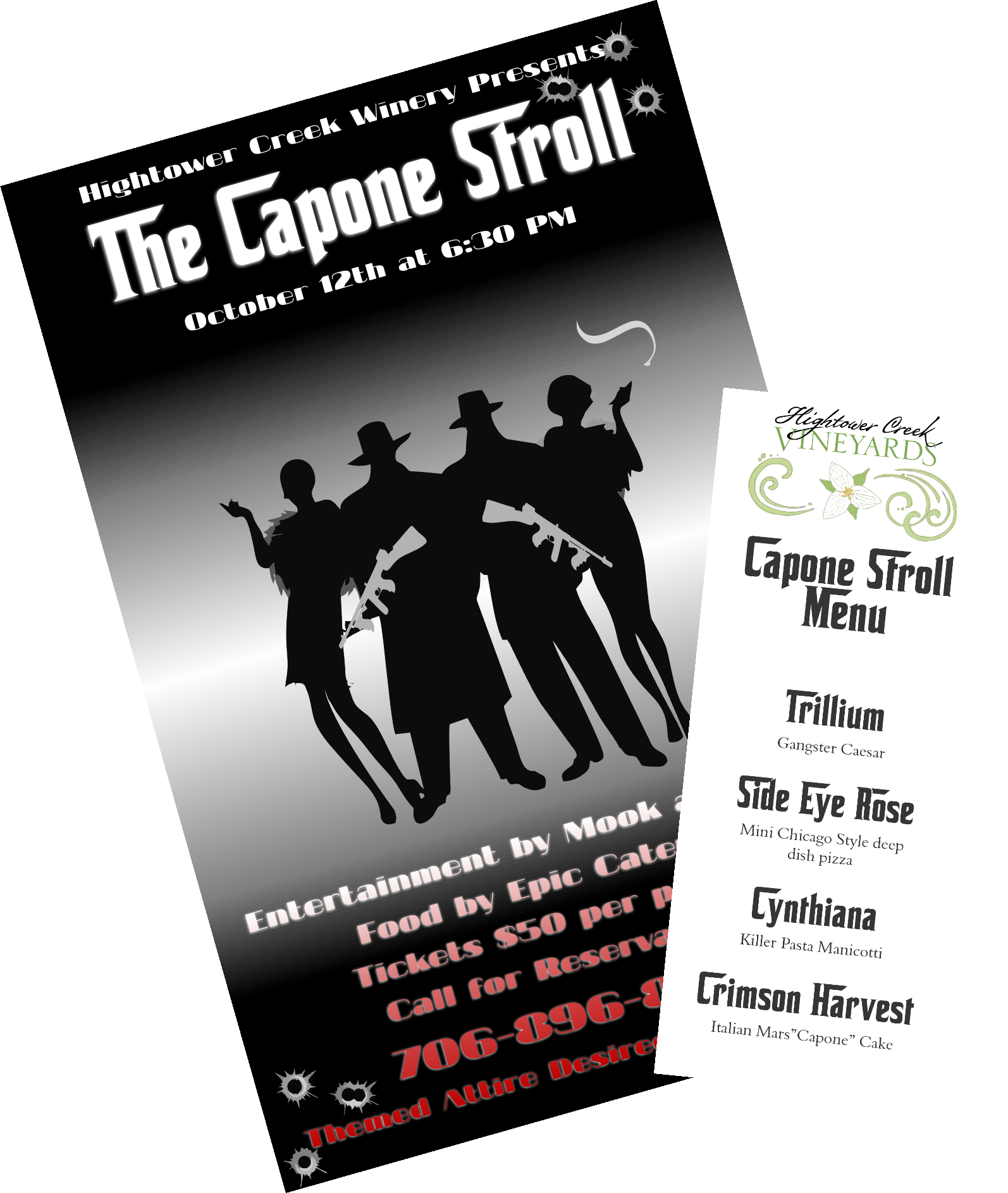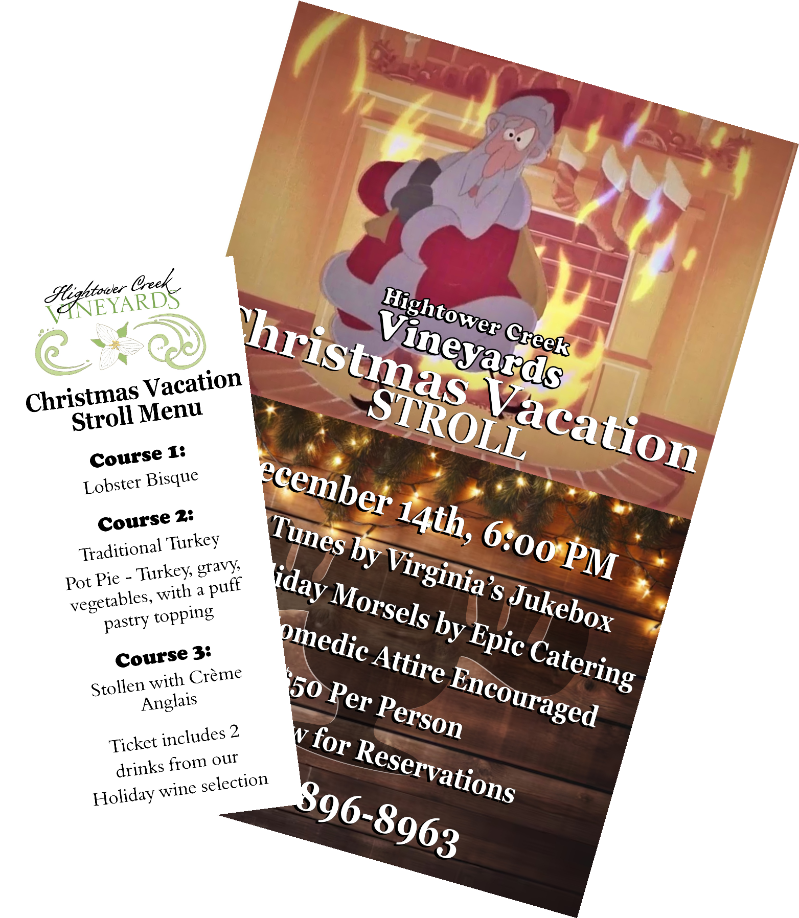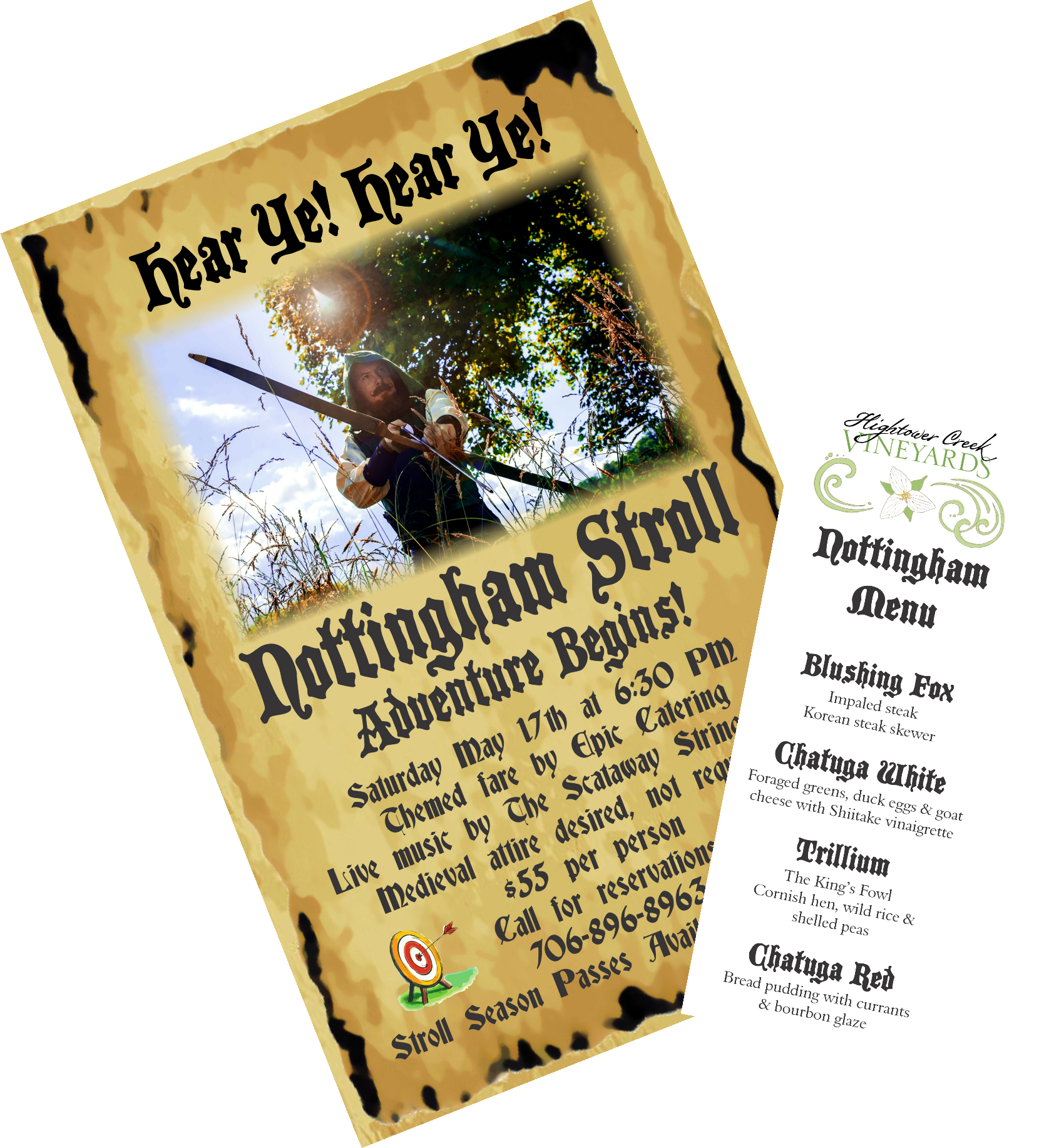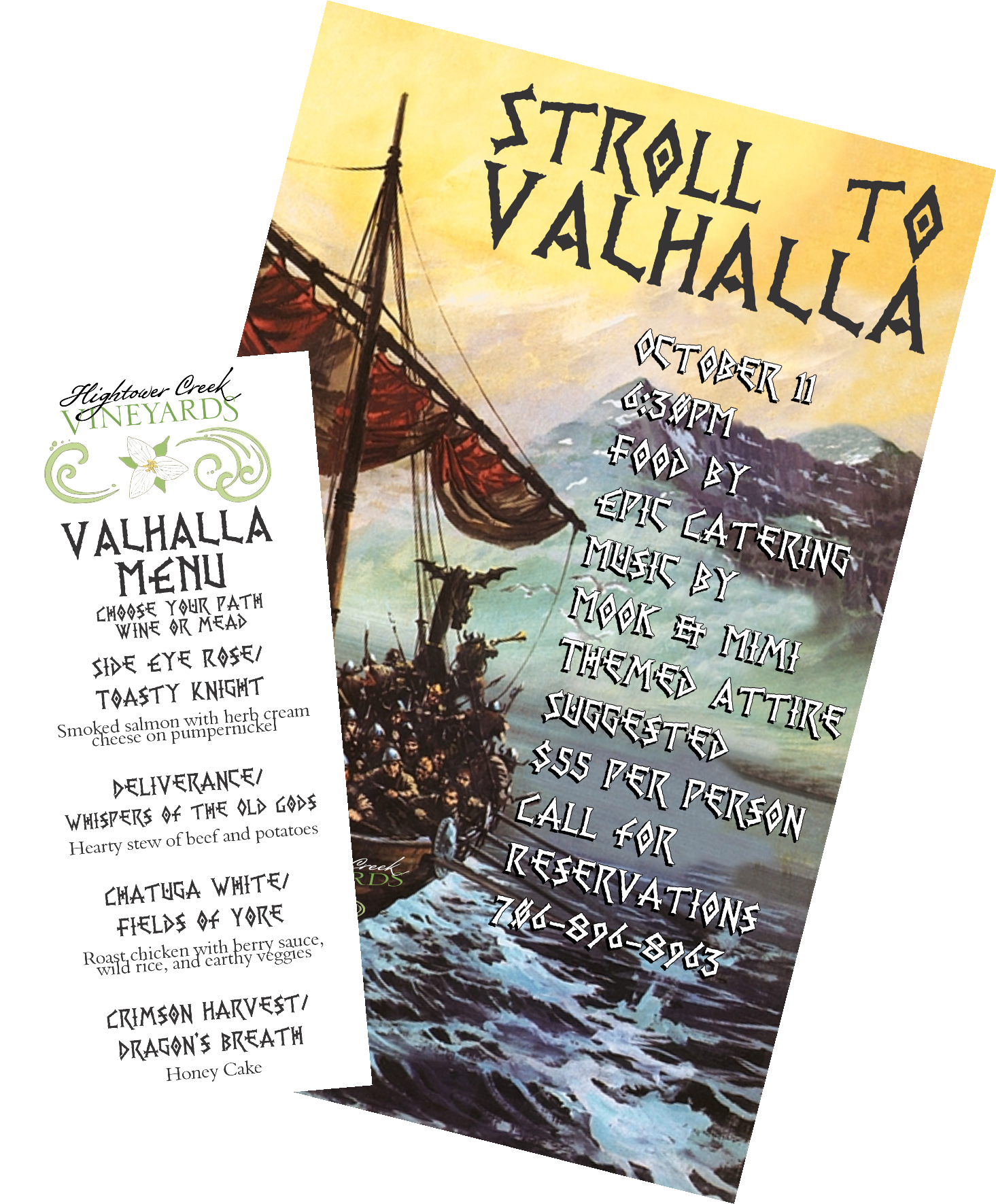At our Strolling wine dinners you will take a tour around our beautiful vineyard and winery and have food and wine pairings at each station, and ending the evening with live music. All of our dinners are themed and we encourage everyone to dress up!